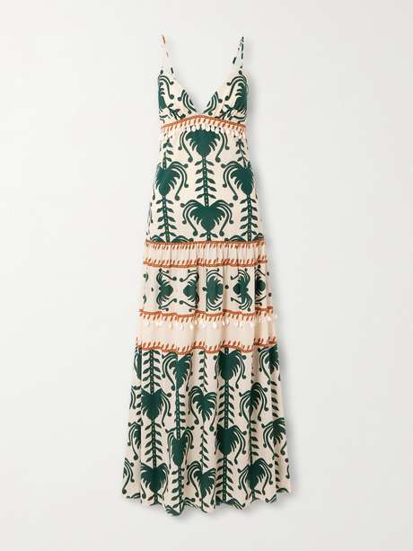 JOHANNA ORTIZ Keeper shell-embellished printed cotton-poplin maxi dress