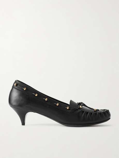 KHAITE has long championed modern femininity through nuance and unexpected detail – qualities embodied in these 'Milly' pumps. They're made from textured-leather and traced with whipstitching threaded with gold-tone beads. The petite heels offer 35mm of height.