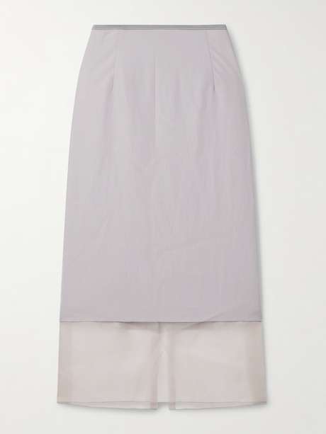 La Ligne's skirt looks especially chic with the matching tank in our edit, but will work just as well with a fluid blouse or bodysuit. It's made from shell in a classic pencil shape and traced with sheer organza along the hem.