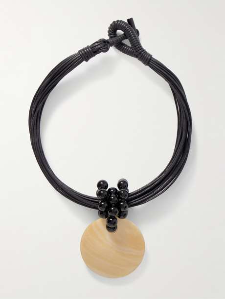LE SUNDIAL The Ivory Eclipse waxed-cotton, onyx and mother-of-pearl necklace