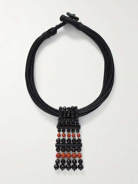 EXCLUSIVE AT NET-A-PORTER. Le Sundial's necklaces will make every outifit look so considered. This 'The Sculptural' style has been handmade in Italy from waxed-cotton and strung with layered strands of onyx, gold and coral.