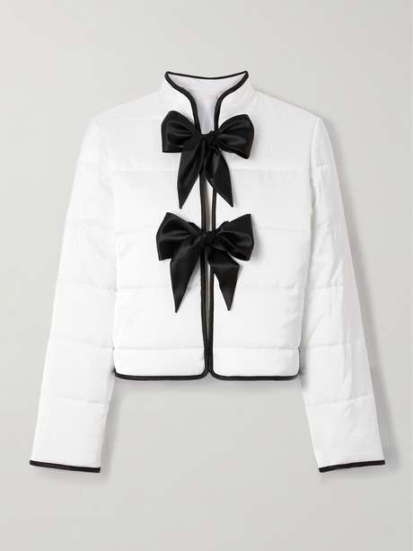 Loretta Caponi's collections fuse "Italian savoir-faire" with "timeless charm." This jacket is made from satin that quilted to keep the padding in place. Contrasting edges perfectly complement the glossy ties at the front.