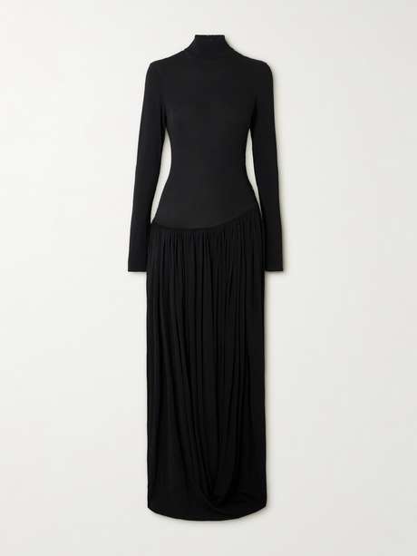 Magda Butrym’s Fall ’25 collection, 'Magdalena', celebrates Polish craft and culture through a modern lens. Debuted on the runway, this maxi dress is cut from smooth stretch-jersey for a slim fit though the bodice and is gathered along an asymmetric seam before falling to a beautifully draped skirt.