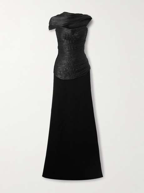 - Black plissé-satin and crepe