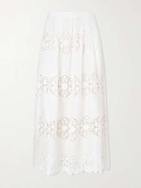 MIGUELINA Carissa embroidered cotton and linen-blend midi skirt