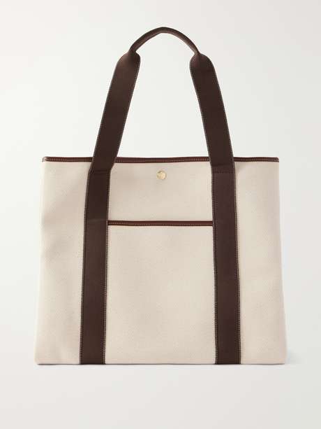 RUE DE VERNEUIL Large leather and webbing-trimmed canvas tote
