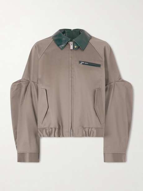 SACAI Pleated leather-trimmed cotton-twill jacket
