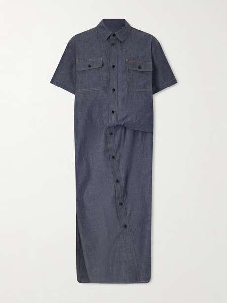 Architectural and conceptual, Sacai has a unique way with silhouette, and the results are always striking. This dress is made from denim that gathers at the hip and gently skews the skirt. Style yours with loafers or combat boots.
