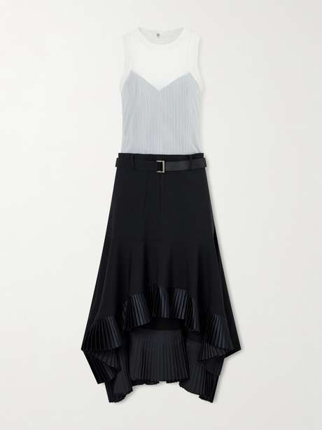 Sacai's dress is designed to resemble two perfectly styled separates. In a monochrome palette, it has a sheer ribbed bodice that's lined for coverage and falls to a high-low skirt with a pleated satin edge. Use the utility-inspired buckled belt to define your waist.