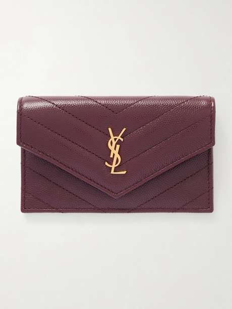 SAINT LAURENT's 'Cassandre' wallet has been made in Italy from quilted textured-leather and topped with the label's iconic 'YSL' plaque in gold. It's fitted with plenty of cardholder slots and has space for cash or receipts.