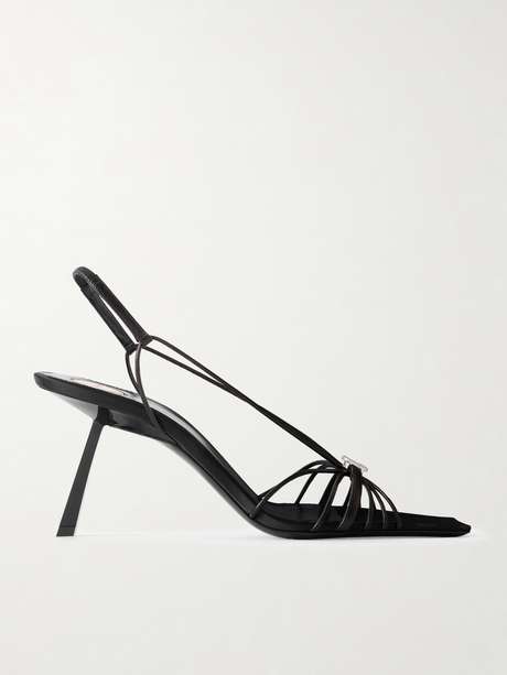 SAINT LAURENT's leather 'Jerry' sandals are reminiscent of barely there styles from the '90s, with slim straps which artfully frame the foot. Made in Italy, they're set on angular 80mm heels and topped with crystal-embellished initials for a touch of glamour.