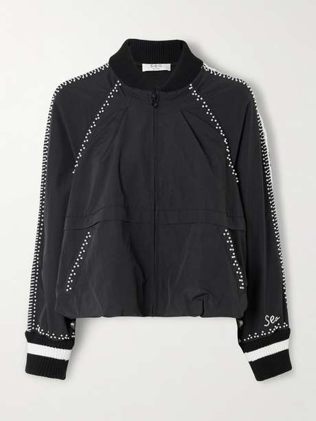 Sea's 'Alberta' jacket is an intricate, decorative take on a utilitarian style. Cut from lightweight shell, it’s embroidered with blanket stitching down the arms and embellished with faux pearls along the seams. Wear yours with the matching pants.