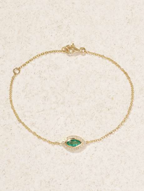 SHAY's bracelet is centered with a marquise-cut emerald that looks like an evil eye - the ancient talisman is said to provide protection and good luck. It's handmade from 18-karat gold and framed with 0.12-carats of shimmering diamonds. Adjust the length for the perfect fit.