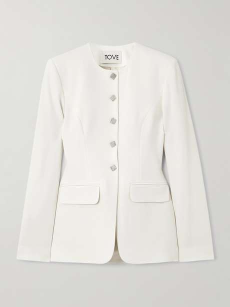 TOVE's 'Moya' jacket reimagines '80s power dressing for today. Tailored from wool-twill, it has a collarless shape with padded shoulders and engraved silver-tone buttons that lead to a split hem. We think it looks best paired with the matching 'Jeanette' skirt in our edit.