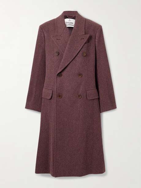 Vivienne Westwood's 'Winston' coat is tailored from wool-twill in a graphic diagonal weave. Designed in a double-breasted profile, it has sharp peak lapels, flap pockets and a generous back vent. Underpin yours with a pussy-bow blouse.
