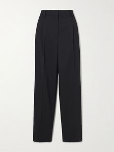 Pleated twill straight-leg pants