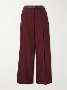 Leather-trimmed pleated wool grain de poudre pants