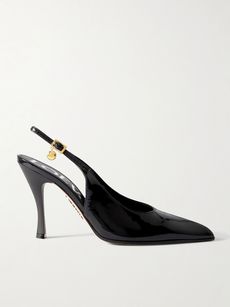 New Comic embellished paneled leather slingback pumps