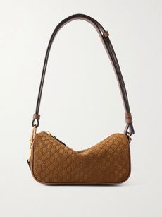GUCCILogo-debossed leather-trimmed suede shoulder bag