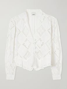 Meanwhile, the drama of Alaïa’s thigh-skimming asymmetric skirts, decorated with oversized tassels, was tempered with sensual off-the-shoulder tops at what transpired to be Pieter Mulier’s last collection for the house. Embrace artisanal touches now with Sharon Wauchob’s fringed white silk-tulle dress, which is hand-finished with feathers, or Bode’s beautiful silk-satin embroidered ‘Phantasm’ mini skirt.