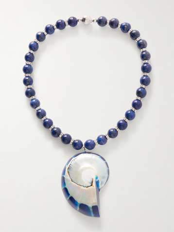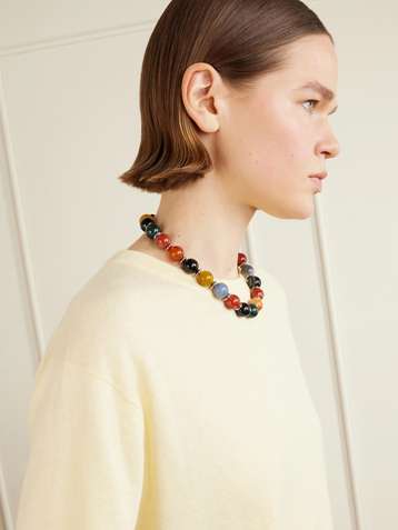 Rhodium-plated, shell and resin necklace