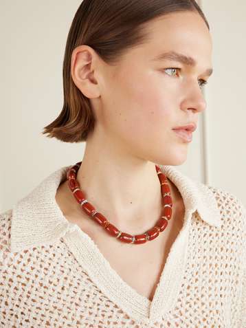 Rhodium-plated jasper necklace