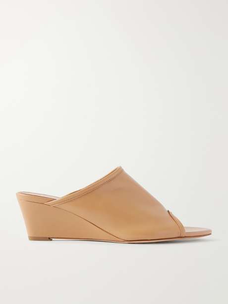 Aeyde’s 'Suzanne' mules channel the minimalism of ’90s style. Designed with a wide mesh leather strap and round toes, they’re set on a mid-height wedge for comfortable, everyday wear.