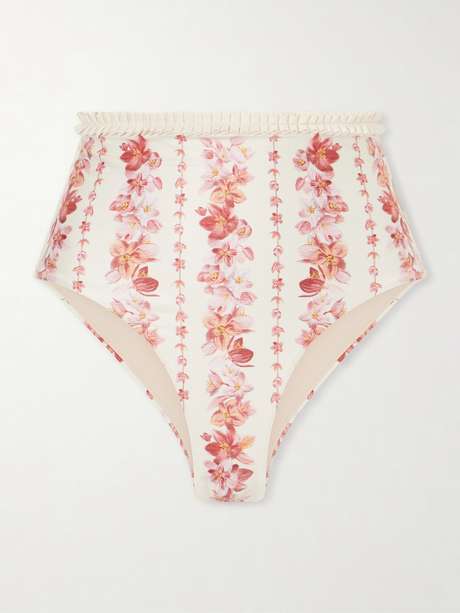 Agua by Agua Bendita's 'Nopal Cauca' bikini briefs are made from quick-drying UPF 50 sun protection fabric patterned with blooming flowers. They sit high at the waist and are finished with ruffles. Wear them with the matching top and pareo.