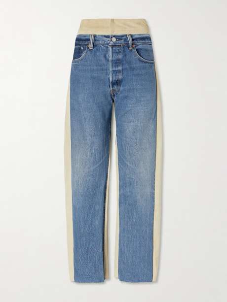 B SIDES Double Waistband Rework suede-trimmed wide-leg jeans