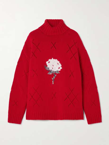 BERNADETTE Sharon oversized intarsia pointelle-knit wool-blend turtleneck sweater