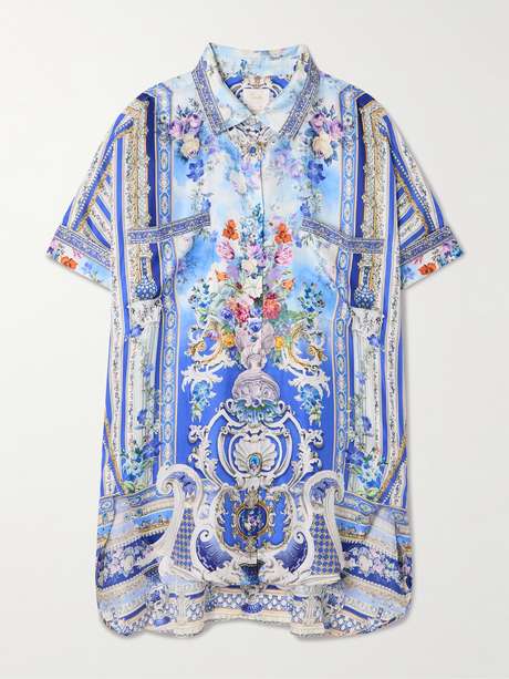 Camilla always has a joyful, dreamy way with prints. This blouse is made from fine silk with a sprinkling of crystals across the surface. Wear yours on vacation with shorts or linen pants.