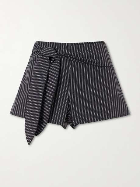 DEIJI STUDIOS Belted striped organic cotton shorts