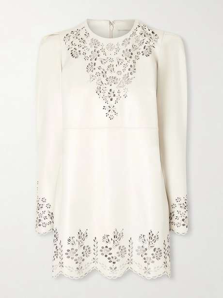Isabel Marant's 'Nala' mini dress blends modern edge with intricate craftsmanship. It's made from supple leather with laser-cut floral motifs and puffed sleeves. Wear yours with tonal boots.