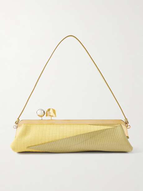 The elongated shape of Jacquemus' 'Salon' clutch is so elegant. It's made from smooth leather with a gold-tone frame and slim leather strap. The clasp is composed of a square and circle, which is a signature that fans will love.