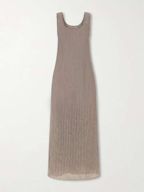 KALLMEYER's 'Isadora' maxi dress approaches minimal dressing with quiet precision. Cut from lightweight striped linen, it has a body-skimming silhouette with a scoop neckline that falls to the feet, while a back split allows ease of movement. Wear it with sleek sandals and a statement bag for a polished day-to-night look.