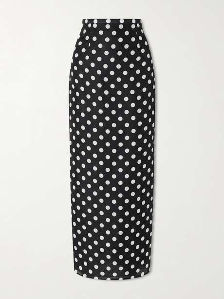 KHAITE Winton polka-dot silk midi skirt