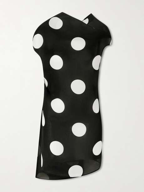 KHAITE's 'Tatia' dress exudes contemporary elegance with its clean lines and interesting design twists. It's cut from crisp polka-dot silk and has a high neckline that looks great with sculptural but dainty earrings.