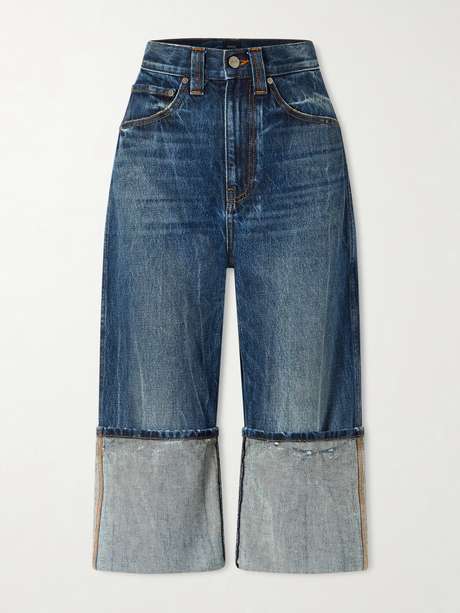 KHAITE's 'Boyle' jeans belong to the Spring '26 collection, where minimalism meets a modern city edge. Inspired by the ongoing capri pant trend, they have cropped legs with exaggerated turned-up cuffs. Wear yours with a sculptural knit and kitten-heel pumps.