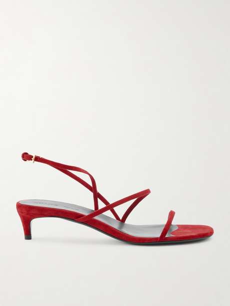 KHAITE's sandals are named for the way the slim straps elegantly 'Loop' around and cradle your foot. Made from suede, they have square toes and 35mm heels that offer comfortable lift.