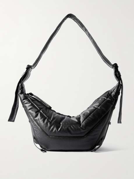 LEMAIRE's shoulder bag draws on the label's signature 'Croissant' style, only this 'Soft Game' version is slouchier, padded for structure and given a practical water-repellent finish. Made from coated-cotton, it has lace-up sides and an adjustable shoulder strap. It’s sized to fit your phone, paperback and wallet.