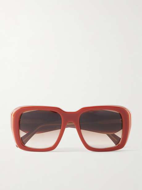 Created in collaboration with Paula's Ibiza, LOEWE Eyewear’s sunglasses exude bold ’70s vibes. Made from acetate, they feature a square frame with sculptural arms in a gradient brick tone.