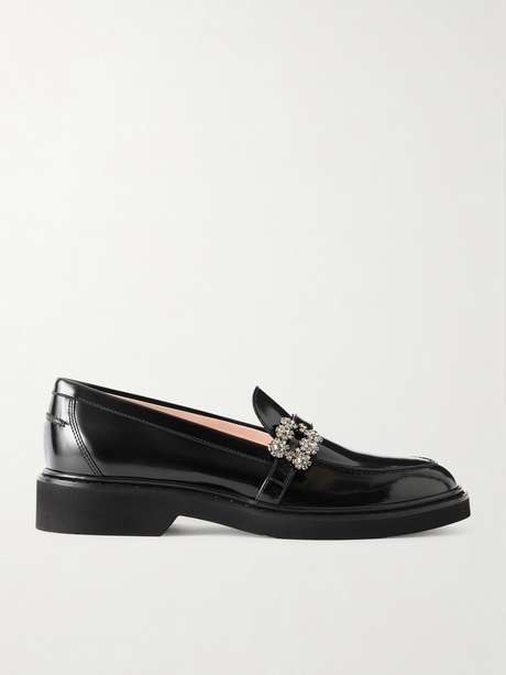 A modern interpretation of classic styles, Roger Vivier's 'Viv' loafers rest on chunky rubber soles. They've been crafted in Italy from glossy leather and finished with a signature crystal-embellished buckle. Opt for hem lengths that keep the detail in focus.