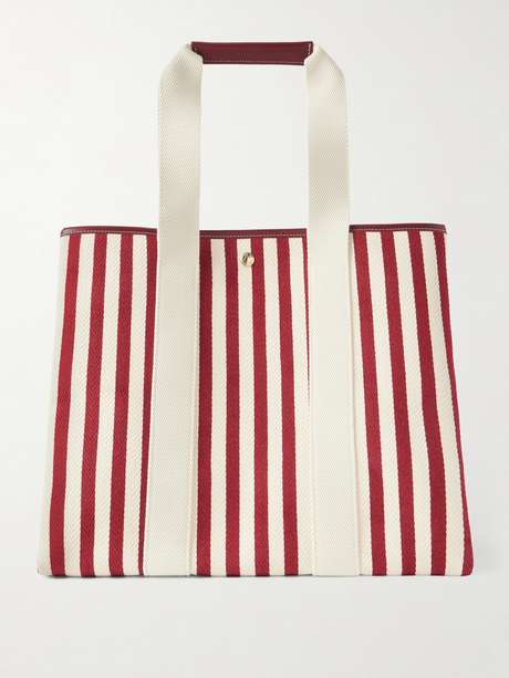 RUE DE VERNEUIL Traversée Glacier large webbing and leather-trimmed striped canvas tote