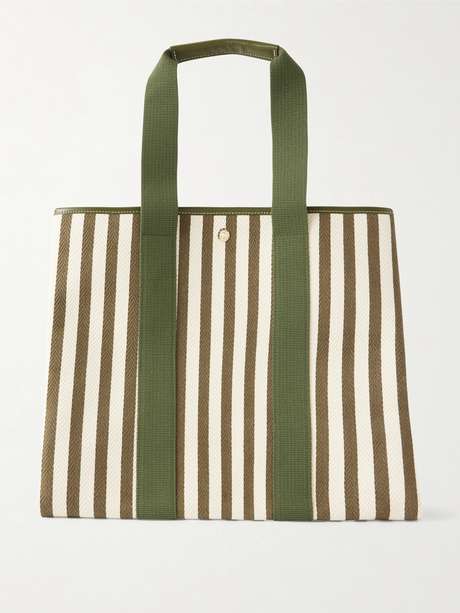 RUE DE VERNEUIL Traversée Glacier Large webbing and leather-trimmed striped canvas tote