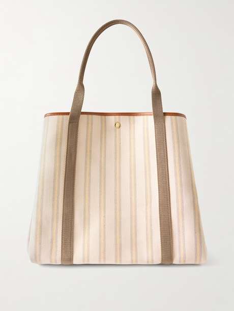RUE DE VERNEUIL Traversée Glacier Large webbing and leather-trimmed striped canvas tote