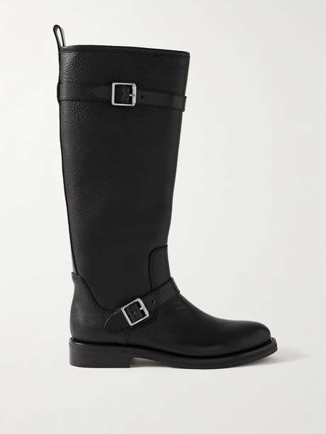 SIMKHAI's 'Noah' boots are reminiscent of classic biker styles. Made from black full-grain leather, they're topped with adjustable buckled straps and have a manageable stacked heel.