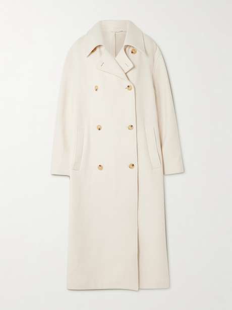 TOTEME's 'Shield' coat is aptly named for its ability to protect you from the elements. Tailored from a wool-blend, it has an enveloping shape with a double-breasted front and wide collar. The satin lining ensures you can layer it comfortably over knitwear, while the dropped shoulders create a relaxed look.