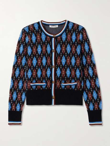 VERONICA BEARD Sylvane striped argyle wool and cotton-blend cardigan