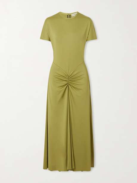 VICTORIA BECKHAM Gathered satin-jersey midi dress