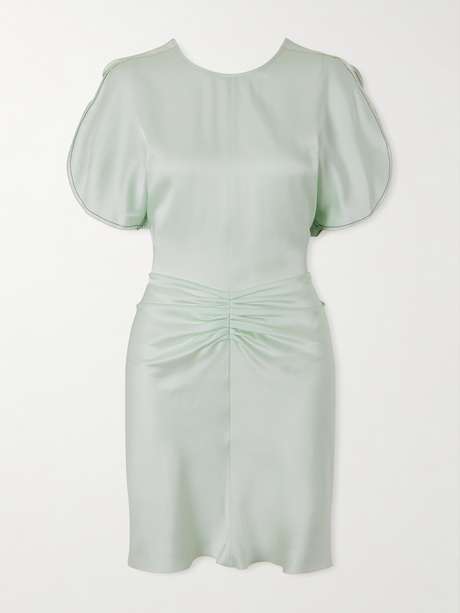 Victoria Beckham's mini dress is intricately gathered along the hips to create pretty draping. Accessorize with heels and a clutch for special occasions.